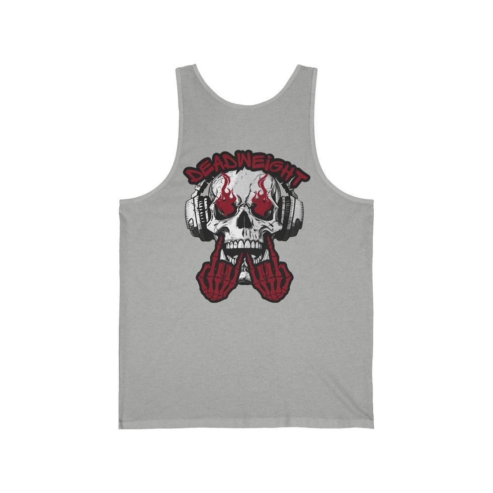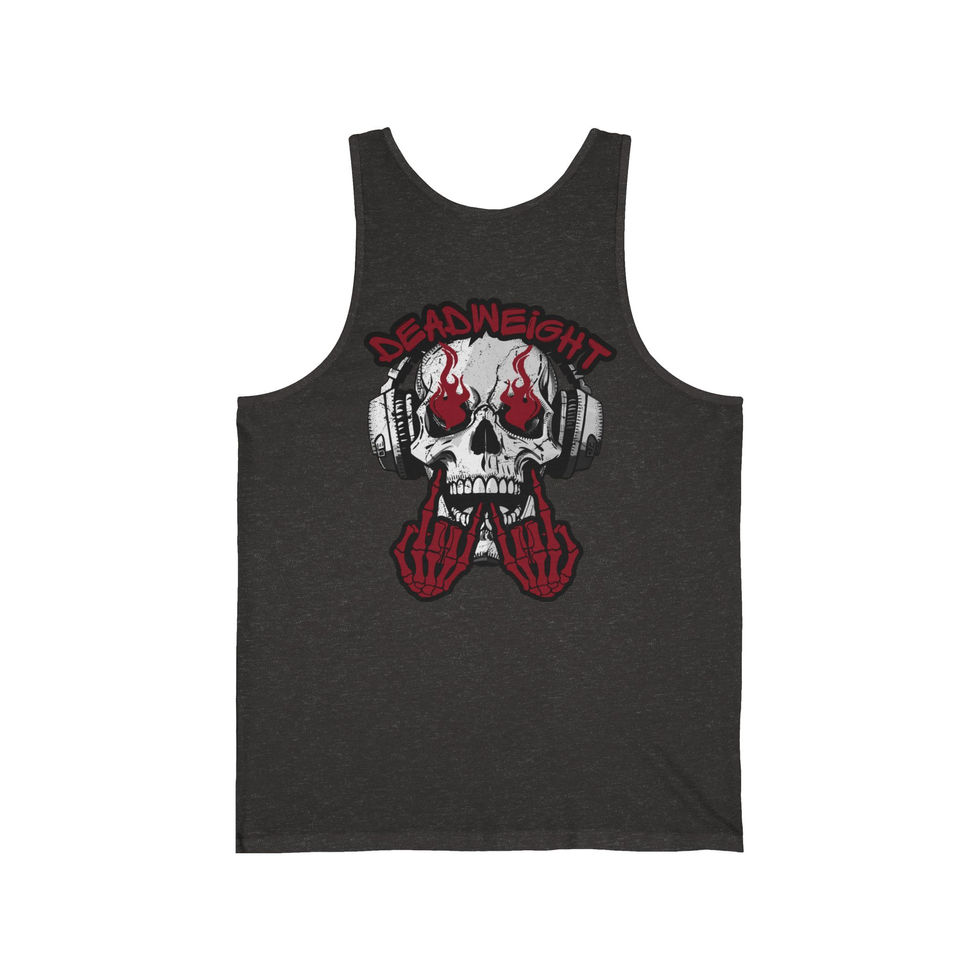 Elevate your workout game and your street style with the Deadweight Skull Graphic Tank. This tee isn’t just for music lovers and tattoo enthusiasts—it’s built for those who bring intensity to everything they do, especially in the gym. The striking skull design, complete with fiery eyes and skeletal hands, is a bold statement piece that motivates you to push harder, lift heavier, and take your fitness journey to the next level.